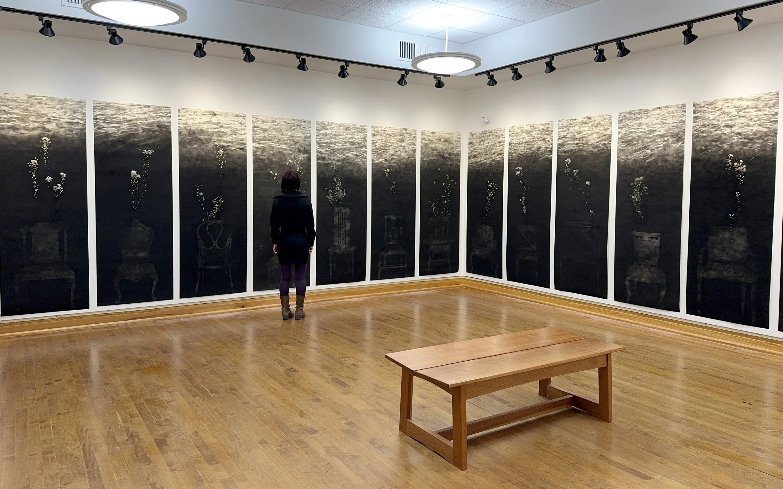 © Deep Echo; Miya Hannan; candle soot on paper, size varies (each panel 80" x 30"), 2023-2035