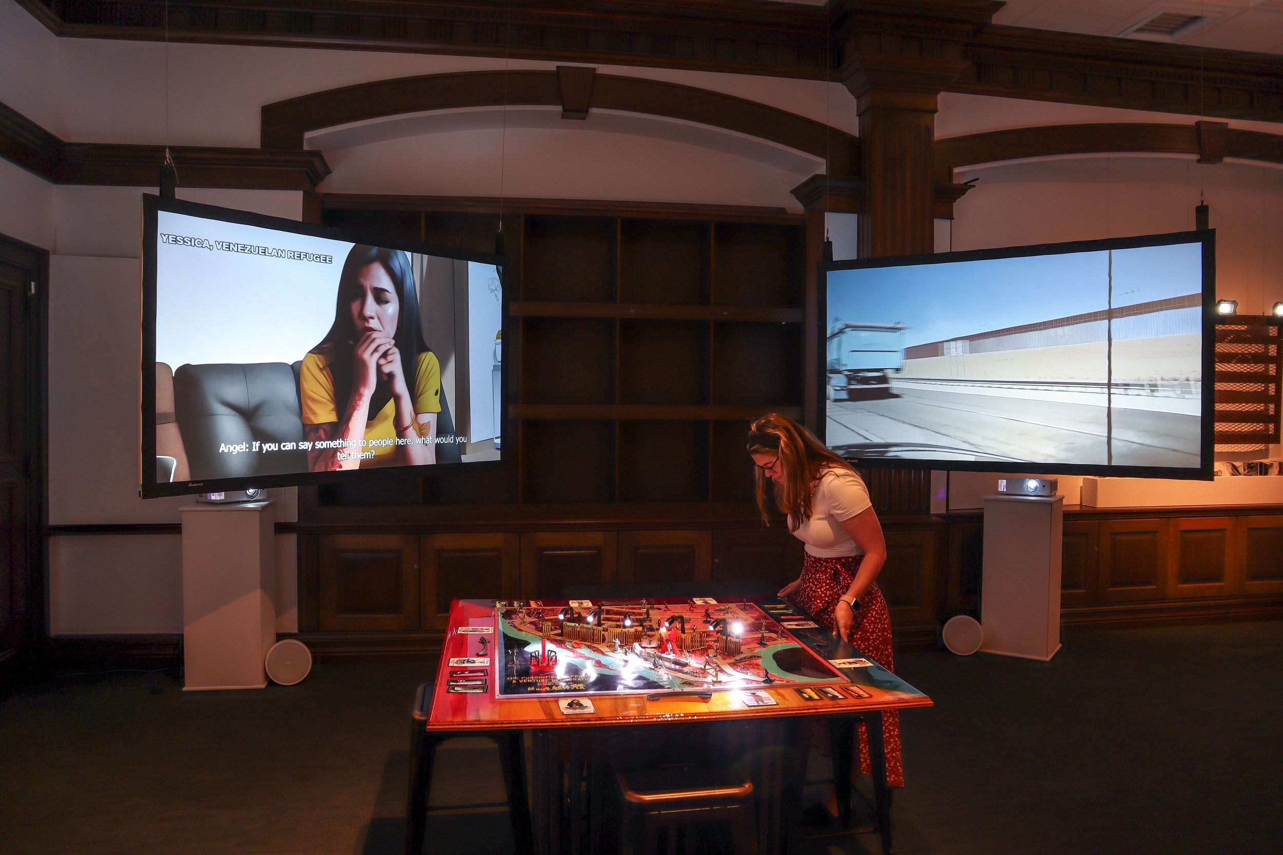 Angel Cabrales, The Pursuit of Happiness: A Venture in Migration, 2024, Mixed media, 3D printing, laser cut acrylic, wood, steel, lights, video, photo credit: Marly Massey